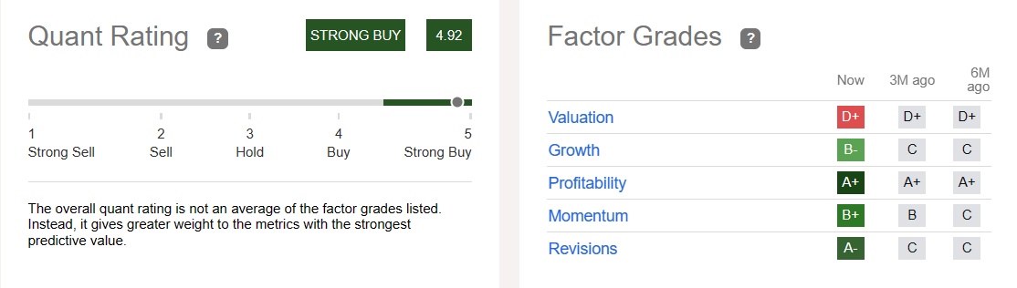 评级方面,数据显示,Seeking Alpha分析师和华尔街分析师对该股的共识评级为“买入”,而涵盖众多动量趋势的Seeking Alpha量化评级显示谷歌量化等级为“强力买入”,评级分数高达4.92。该股今年迄今已上涨近38%。