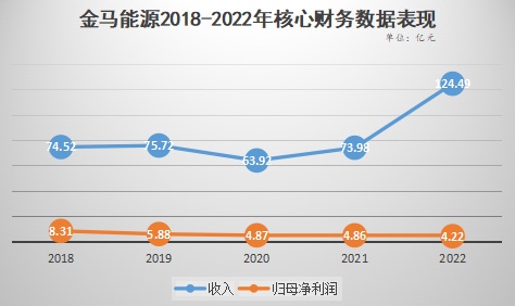 回溯往绩,2018-2022年金马能源的收入分别为74.52亿元、75.72亿元、63.92亿元、73.98亿元、124.49亿元。在公司规模狂飙突进的2022年,正是焦炭业务显著放量贡献了主要的增量。数据显示,该年金马能源的焦炭业务实现收入85.51亿元,较上一年度的38.22亿元增加了47.29亿元。