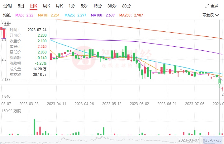 业绩大幅缩水,与此同时金马能源的股价也是深陷熊途。7月24日,金马能源低开低走,盘中跌幅一度超过-7%。截至当天收盘,金马能源报收2.1港元,跌幅为-6.25%,股价为2021年2月以来新低。