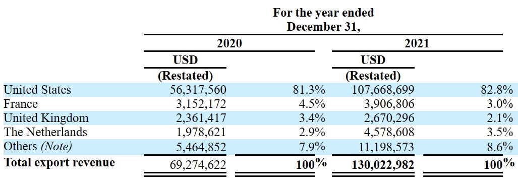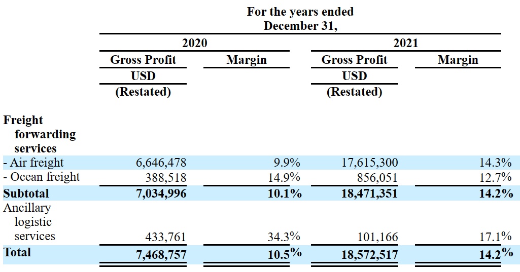 从业绩来看,利航国际2021年收入增长85.19%至1.3亿美元主要得益于“量价齐升”。据招股书显示,在报告期内,利航国际对美国和荷兰的货物出口量同比分别增长46.37%、105.1%,这带动了公司货物总出口量增长45.68%至1.458万吨;同时,由于疫情造成的供应短期,报告期内运输到美国的平均运费从6.5美元/每公斤增至8.5美元/每公斤,平均运费涨幅超30%。