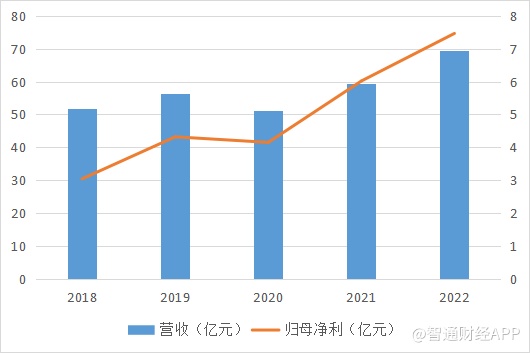 纵观公司近年业绩,自2020年以来公司营收和净利均迎来修复性增长。2020年至2022年间,公司营收从51.27亿元持续增长至69.61亿元,净利则从4.15亿元增长至7.47亿元。对于一家营收几十亿规模的公司来说,这样的同比增速是十分显著的。