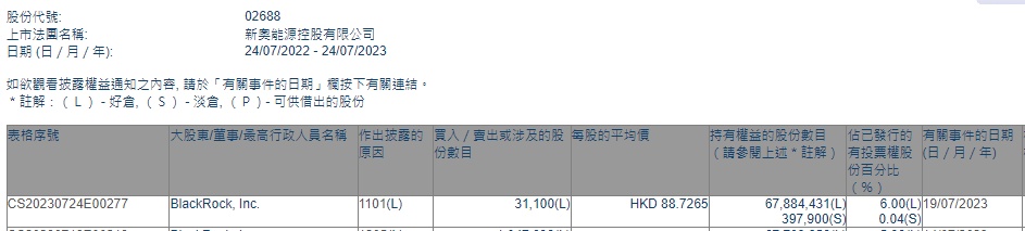 智通财经APP获悉,香港联交所最新资料显示,7月19日,贝莱德增持新奥能源(02688)3.11万股,每股作价88.7265港元,总金额约为275.94万港元。增持后最新持股数目约为6788.44万股,最新持股比例为6.00%。
