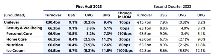 按业务划分,美容&健康业务营收为31亿欧元,基础销售额同比增长8.8% ;个人护理业务营收为35亿欧元,基础销售额同比增长9.0%;家庭护理业务营收为30亿欧元,基础销售额同比增长6.7%;营养品业务营收为33亿欧元,基础销售额同比增长8.9%;冰淇淋业务营收为28亿欧元,基础销售额同比增长5.6%。