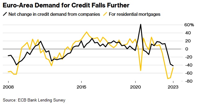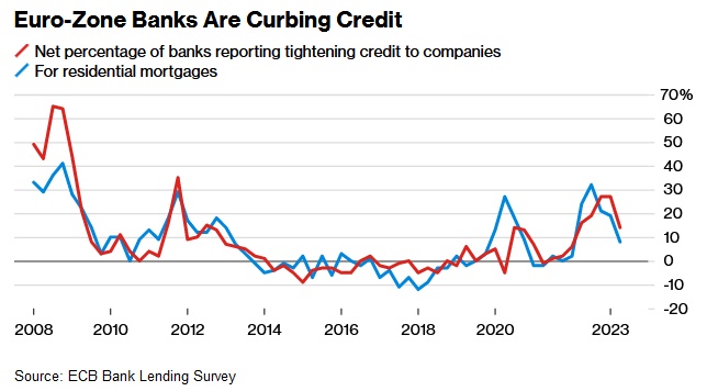这项始于2003年的季度调查让人们得以一窥欧洲央行史无前例的紧缩举措对贷款的影响。贷款是政策制定者们在寻求不破坏已经陷入困境的经济的前提下使通胀回落至2%目标水平的关键渠道。