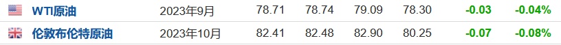 3. 截至发稿,WTI原油跌0.04%,报78.71美元/桶。布伦特原油跌0.08%,报82.41美元/桶。
