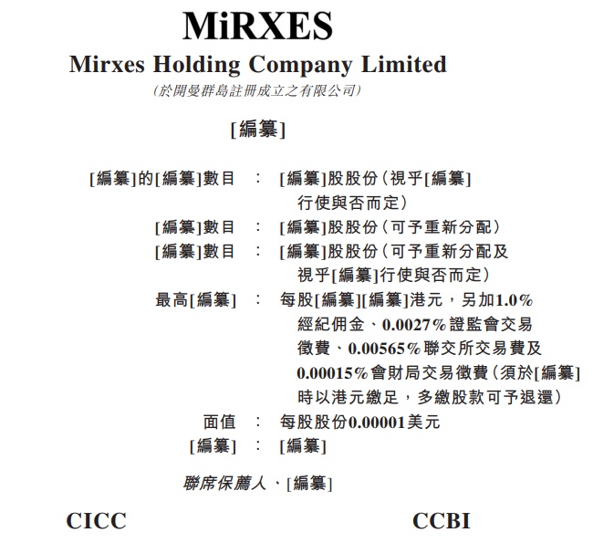 智通财经APP获悉,据港交所7月25日披露,觅瑞集团(Mirxes Holding Company Limited)向港交所主板递交上市申请,中金(CICC)、建银国际(CCBI)为其联席保荐人。