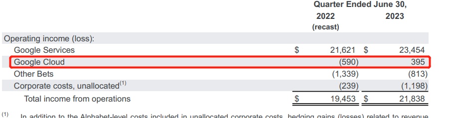 谷歌云服务部门——谷歌云(Google Cloud)带来的营收则高达80.3亿美元,同比增长约28%,与第一季度增速基本持平,止住了连续两个季度增长放缓的势头,分析师预期同比增长近24.8%至78.27亿美元。并且谷歌云连续两个季度实现盈利——营业利润Q2达到3.95亿美元,超过分析师预期的1.63亿美元,约为一季度利润1.91亿美元的两倍,去年第二季度云业务则亏损达5.9亿美元。