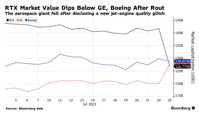 Whitney)的喷气发动机出现新的故障,雷神技术(RTX.US)市值一夜蒸发150亿美元,并导致这家航天航空与国防巨头失去了作为全球航空航天领域最具价值公司的地位。