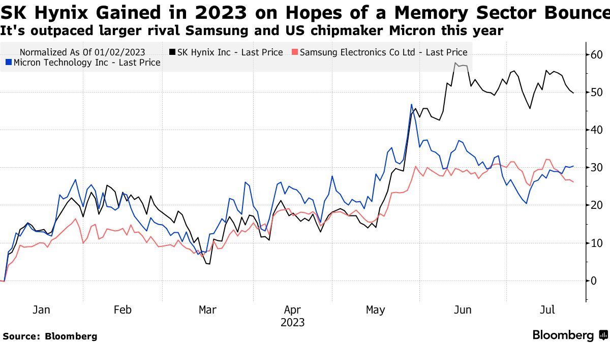 全球三大存储芯片巨头:三星电子(Samsung Electronics Co.)、SK海力士和美光科技在过去两年的大部分时间里都在苦苦挣扎,因为智能手机、服务器和电脑所必需的存储芯片需求在新冠疫情后大幅下降。本月,规模更大的竞争对手三星的初步业绩显示,三星可能录得十多年来最严重的季度销售额下滑。
