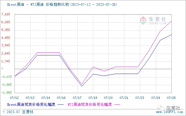 智通财经APP获悉,7月28日,本轮国内成品油调价窗口于7月26日24时开启,本轮成品油零售价再遇上调,2023年零售价调整已经历“六涨六跌两搁浅”,周期内原油市场价格持续走高,变化率正值扩大,本轮成品油零售价将迎“三连涨”。进入本轮计价周期,国际原油变化率维持正向,截止25日,美国WTI原油期货主力合约结算价报79.63美元/桶,布伦特原油期货主力合约结算价报83.25美元/桶。本轮调价周期内国际油市利好因素支撑: