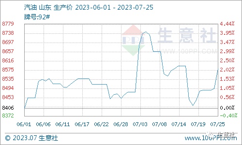 汽油方面:受原油价格上涨拉动,汽油价格走势上涨,山东地炼开工率小幅上涨,供应方面有所增加,山东地炼开工在64.5%左右。随着高温天气出现,暑假出游增加,私家车空调使用率增加,汽油需求方面有所保证,加之成本面强势支撑,部分中间商入市积极采购,汽油市场行情走势上涨。