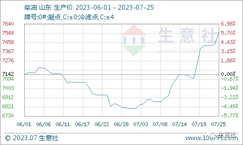 柴油方面:山东地炼企业开工方面小幅增加,供应面较为宽松,加之受原油价格消息利好支撑,柴油市场价格大幅上涨。近期柴油价格大幅上涨,首先是原油价格强势支撑,致使成本面利好明显。其次由于中间商建仓采购,对于柴油方面订单大幅增加,致使柴油价格上涨。最后南方梅雨季节即将结束,加之南方休渔期也面临尾声,需求有向好预期;北方高温多雨天气增加,户外工矿、基建等开工仍受到一定限制,但是利好因素支撑明显,柴油价格涨幅较大。