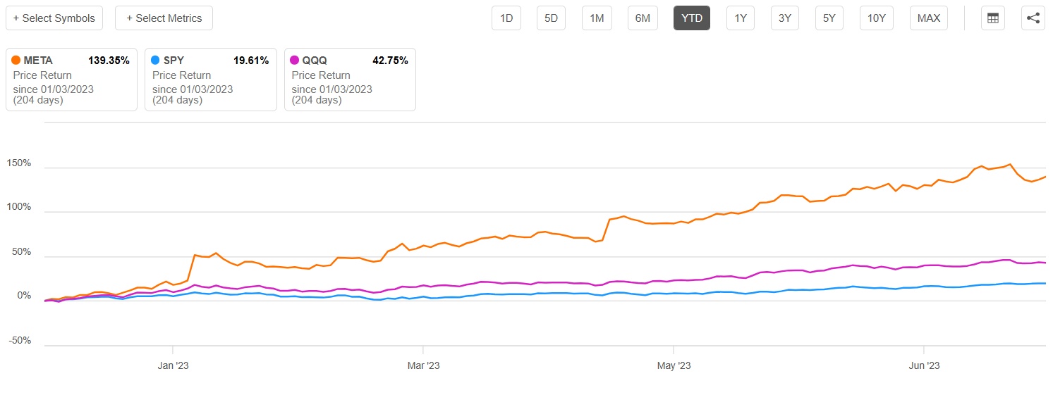 在Meta首席执行官马克·扎克伯格所称的“效率年”里,Meta已经裁掉了数千个职位和旗下团队,该公司目前聚焦于转变为一家更强大、更灵活的组织,积极主动地削减那些没有业绩或可能不再关键的业务。这一策略得到了投资者的普遍认可,并且助力Meta业绩好转,加之乘着全球AI浪潮,刺激该公司股价今年迄今上涨了一倍多,涨幅达到惊人的139%。更重要的是,在AI领域深耕多年的Meta也一直在大力投资与发展人工智能,利用该技术为内容和广告提供更适合用户兴趣的推荐。