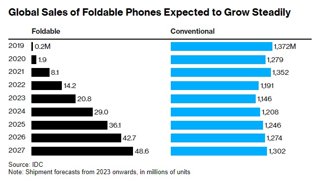 安卓制造商谷歌(GOOGL.US)也凭借其Pixel Fold手机加入了这场竞争,但这款设备只在少数地区推出。三星仍然是全球最大的可折叠手机销售商。