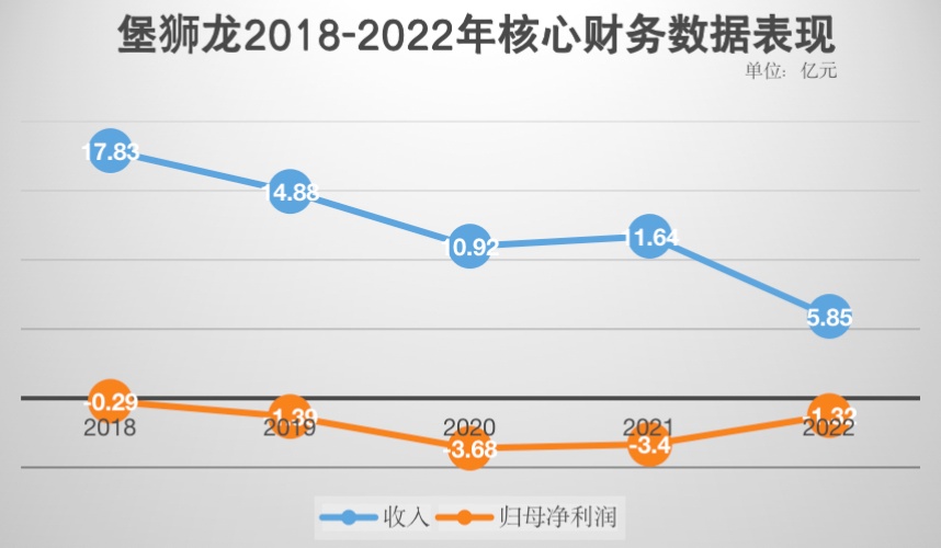 首先从基本面来看,堡狮龙的至暗时刻或已过去,在去年的极低基数下公司业绩具备触底反弹的条件。回溯往绩,2018-2022年期间,堡狮龙的收入分别为17.83亿港元、14.88亿港元、10.92亿港元、11.64亿港元、5.85亿港元。可见,2022年正是其近五个年度最差收入表现的年份,同年,堡狮龙的归母净利润为-1.32亿元,亦深陷亏损泥淖。