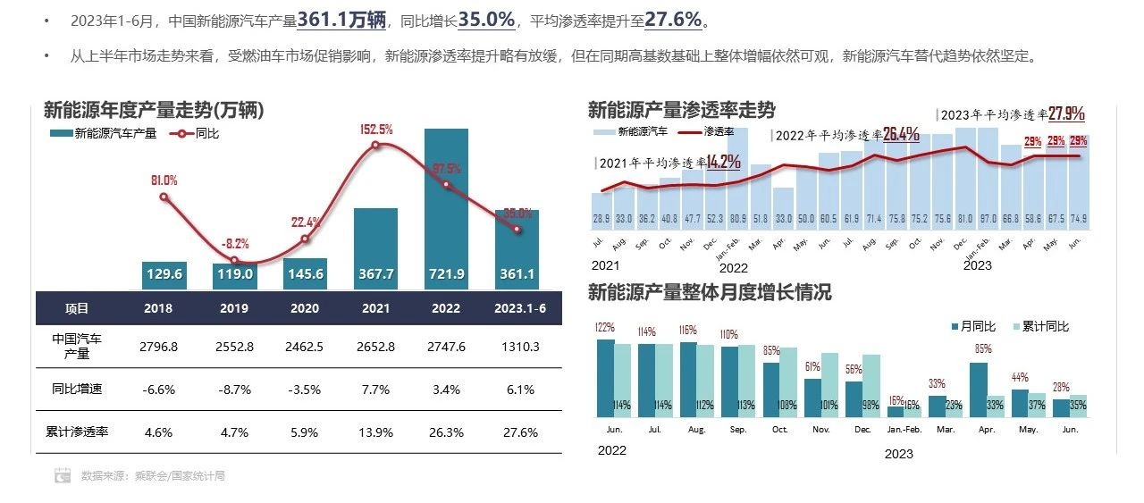 新能源汽车产量,1-6月同比增长35%,表现好于汽车市场整体6.1%的增幅。