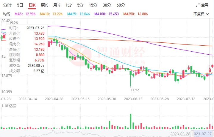 值得一提的是,受前述盈喜公告刺激,7月26日九毛九股价高开高走,盘中涨幅一度升近10%。截至当天收盘,九毛九股价报13.92港元,涨幅6.75%。隔日,九毛九延续升势,至收盘股价报14.28港元,月内累计涨幅达到11.21%。