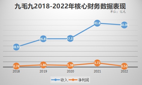 对于业绩、股价双双深陷低迷境地的九毛九而言,这则盈喜大概可算作是“久旱逢甘霖”了吧。根据公司财报,2022年九毛九营收为40.1亿元、归母净利润更是只有4928万元,较上一年度分别下滑了4.2%、85.5%。
