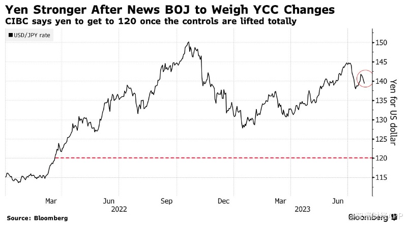 即使对收益率上限进行小幅增加,也可能支持日元走强。加拿大帝国商业银行(CIBC)的全球外汇策略主管Bipan Rai表示:“如果他们调整上限25个基点,那么美元/日元可能会接近135-136区域。完全放弃控制,长期来看,我们可能接近120。”