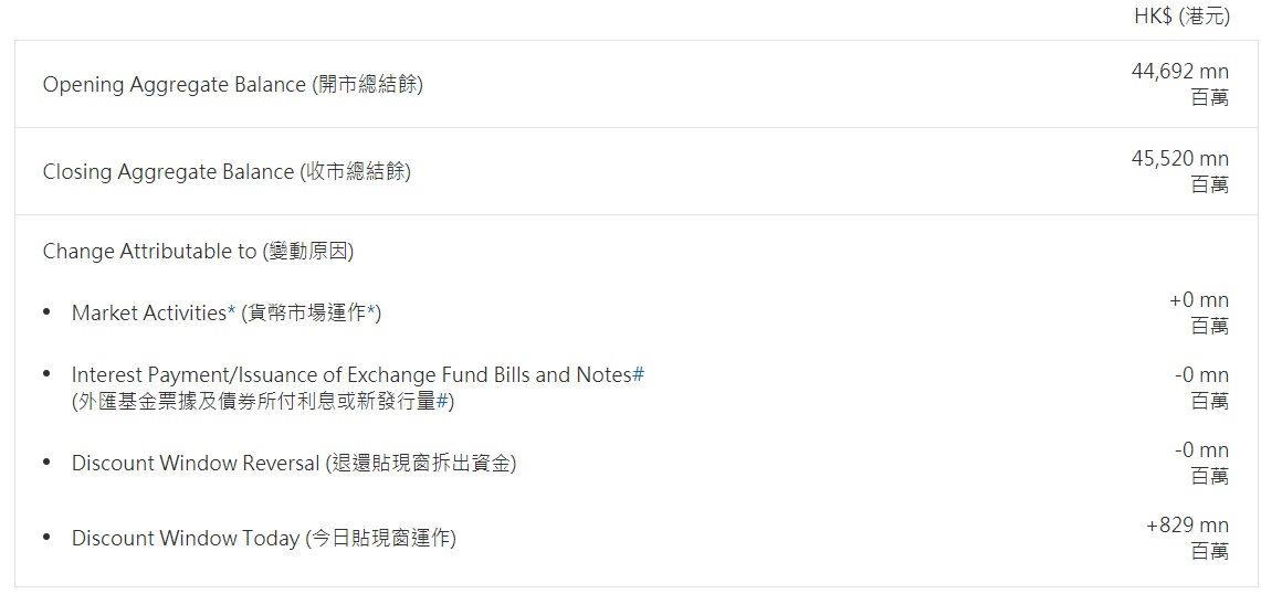 香港金管局通过贴现窗口投放8.29亿港元 创上周以来最高