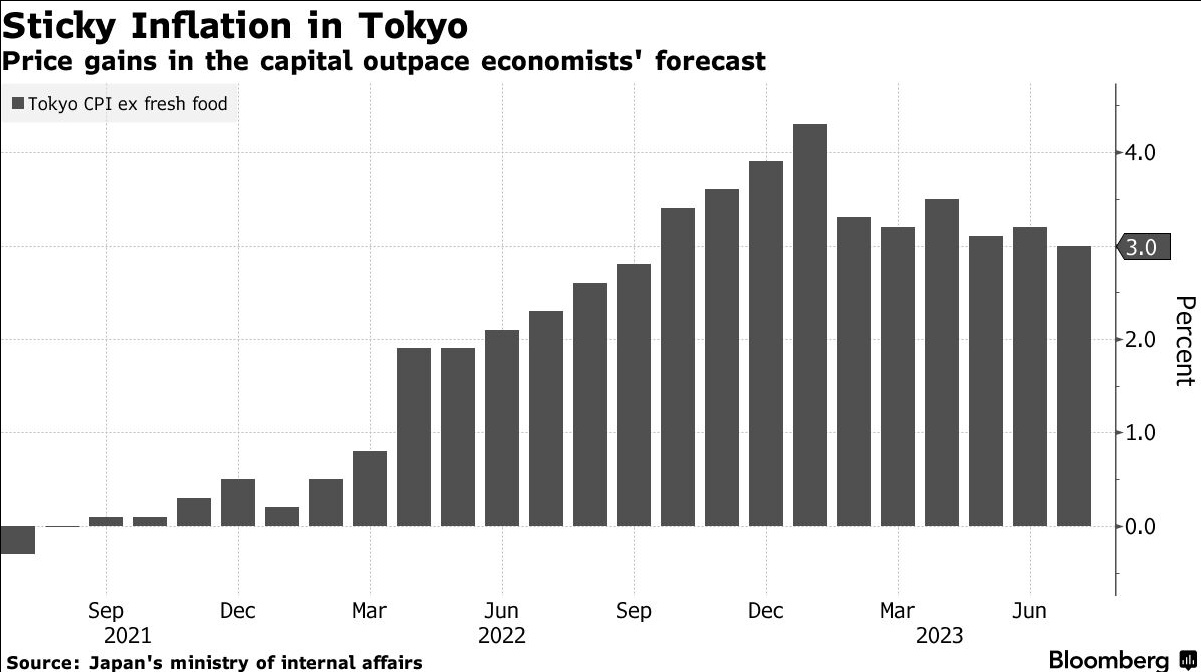 东京的数据是日本全国消费者价格指数(CPI)的领先指标,后者将在大约三周后发布。