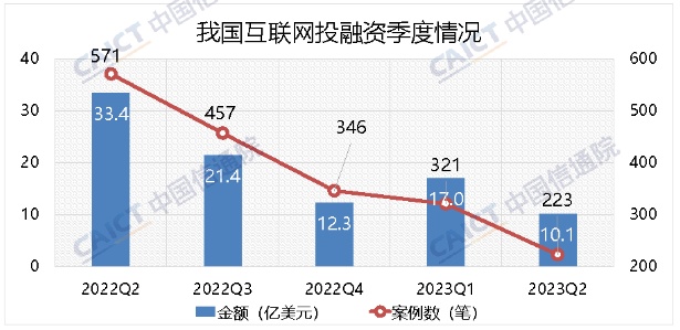 智通财经APP获悉,日前,中国信息通信研究院政策与经济研究所互联网运行分析团队发布了《2023年二季度互联网投融资运行情况》报告。数据显示,我国互联网投融资表现低迷。二季度,我国互联网投融资案例数环比下跌30.5%,同比下跌60.9%;披露的金额环比下跌40.4%,同比下跌69.8%。