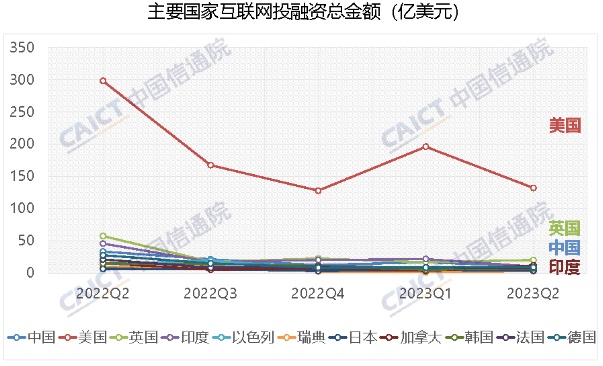 主要国家投融资规模表现不一。2023Q2,美国、印度融资规模环比分别下降32.6%和53.7%,英国、以色列、加拿大融资规模环比分别增加19.5%、80.5%和254.6%。
