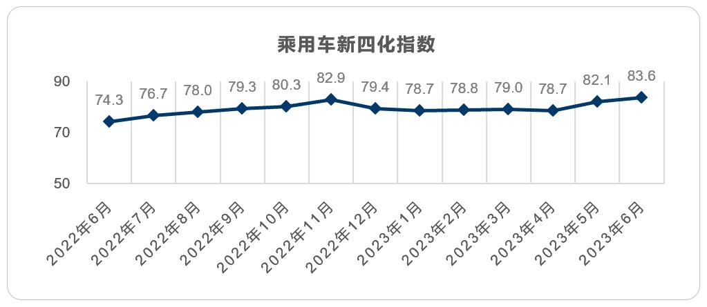 智通财经APP获悉,7月28日,乘联会联合安路勤联合发布乘用车新四化指数。2023年6月乘用车新四化指数为83.6。其中电动化指数为33.2;智能化指数为53.0;网联化指数为66.5。