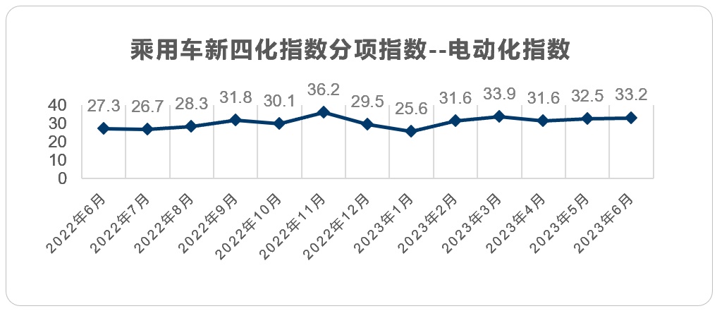 2023年6月电动化指数为33.2,连续2个月保持上升态势。