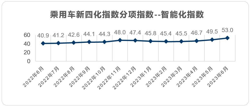 2023年6月智能化指数为53.0,近一年内指数首次突破50关口。