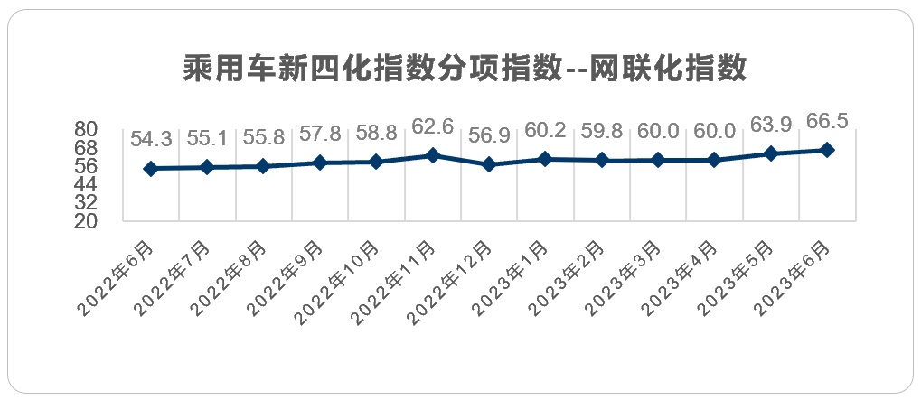 2023年6月网联化指数为66.5,连续2个月保持较大幅度上升,并屡创新高。