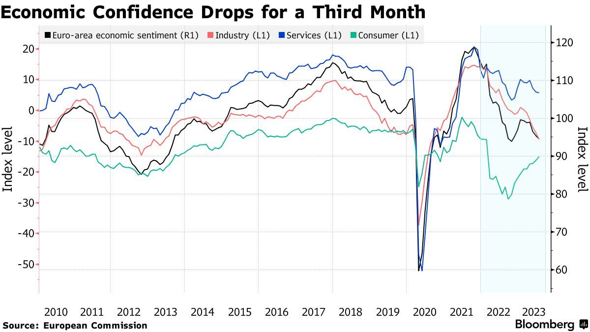 本周公布的一系列经济指标都指向了不容乐观的欧元区经济前景。周一公布的数据显示,欧元区7月Markit综合PMI初值降至48.9,创下去年11月以来的最低水平,低于6月的49.9和经济学家预期的49.7,为连续第二个月低于荣枯线50。欧洲央行周二公布的《银行贷款调查》显示,企业贷款需求下降42%,并创下历史新低;该调查还显示,住宅抵押贷款和其他消费者贷款需求进一步下降,且降幅明显超出放贷机构的预期。
