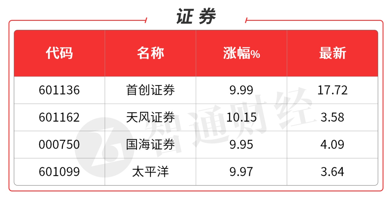 证券的突然发力来自于市场流传的小作文,券商龙头太平洋(601099.SH)顶住昨日38亿压力,强势封板,炸板再封,展现多头决心,之后同是低价的天风证券(601162.SH),国海证券(000750.SZ)、首创证券(601136.SH)等助攻,而对板块整体启动起到关键作用的是大块头中信证券(600030.SH)被百亿资金拉到涨停,时隔3年巨无霸出手,直接把板块气氛拉满。资金还往银行,参股券商,多元金融等发酵挖掘。互联网金融概念股同样表现抢眼,其中财富趋势(688318.SH)、指南针(300803.SZ)均20CM涨停,大智慧(601519.SH)、金证股份(600446.SH)等涨停。后续能否持续走强取决于周末利好程度。