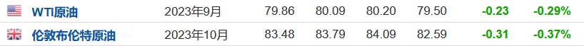 3. 截至发稿,WTI原油跌0.29%,报79.86美元/桶。布伦特原油跌0.37%,报83.48美元/桶。