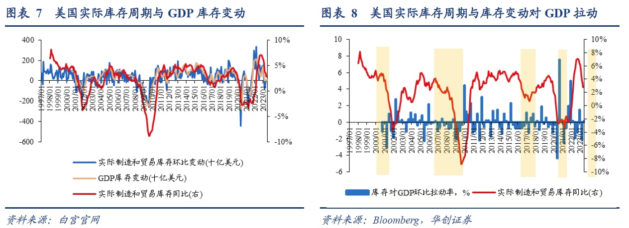 三个因素支撑美国二季度经济强劲增长,一是超额储蓄持续消耗、就业市场紧张与通胀回落带来的实际收入回升以及财富效应影响下,消费仍具韧性;二是政府支持的重点投资与供应链缓解带来的私人非住宅投资增长;三是库存变化并未对GDP构成拖累。展望后续,这也是今年美国经济软着陆的三条线索脉络:超额储蓄依然能支撑消费继续韧性放缓至今年底;政府支持下的赛道投资或能减缓整体私人固投的下行压力;除非出现经济危机,否则GDP库存变化基本不会为负,目前GDP库存变动已经降至0附近,下半年库存变动可能不会对GDP造成明显拖累(去库周期与库存对GDP影响是两个概念,前者是同比,后者是库存的“二阶导”)。由此,今年美国经济大概率可实现软着陆。对美股而言,下半年盈利韧性交易可能仍是主逻辑,加息周期尾声,分母端估值压力边际钝化,而软着陆的前景将缓解分子端的压力,对美股偏利好。