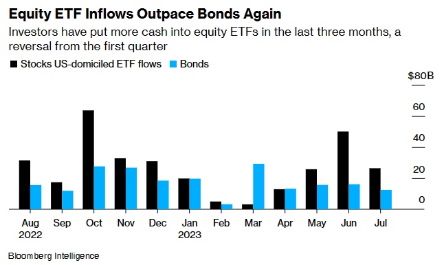 德意志银行的数据显示,投资者已经加快了购买股票的速度,过去三个月,流入交易所交易基金(ETF)的资金显示出对股票的强烈偏好,而非固定收益产品,这与年初相比出现了重大逆转。