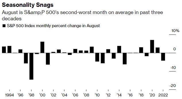 但对于目前过于乐观的市场有理由感到担忧。在经历了一段时间的通胀和大幅加息后,美联储正在走钢索——寻求实现软着陆,这种努力成功的概率极其小。最重要的是,8月和9月往往是标普500指数一年中表现最差的两个月。