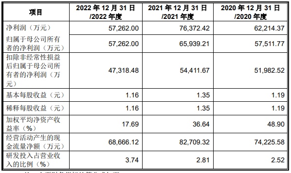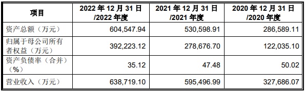 财务方面,于2020年度、2021年度、2022年度,公司实现营业收入分别为32.77亿元、59.55亿元、63.87亿元,其中公司实现净利润分别为6.22亿元、7.64亿元、5.73亿元。