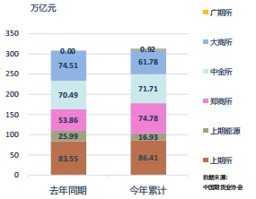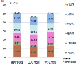 上期所月累计成交额为86.41万亿元,占全国市场的27.65%,同比增长3.42%。