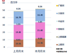 郑商所月持仓量为21.60百万手,占全国市场的41.48%,环比增长8.80%。