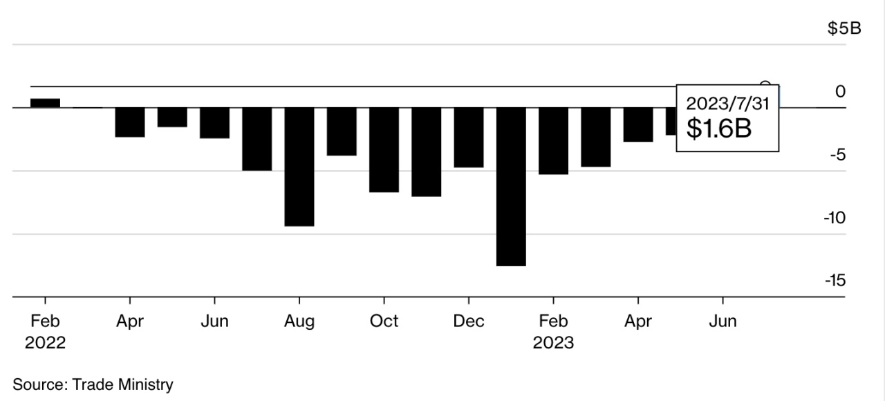 掉期市场的仓位表明,分析师认为美联储和欧洲央行的紧缩周期已接近尾声,但利率可能需要一段时间才能再次开始下降。尽管如此,还是有一些乐观的情绪。芯片制造商已开始预测,随着需求在长期低迷后回升,海外出货量将出现复苏。特别是中国在今年新冠疫情后预期复苏,国家正计划采取措施重振经济增长。目前,韩国的贸易平衡在经历数月逆差后开始改善。