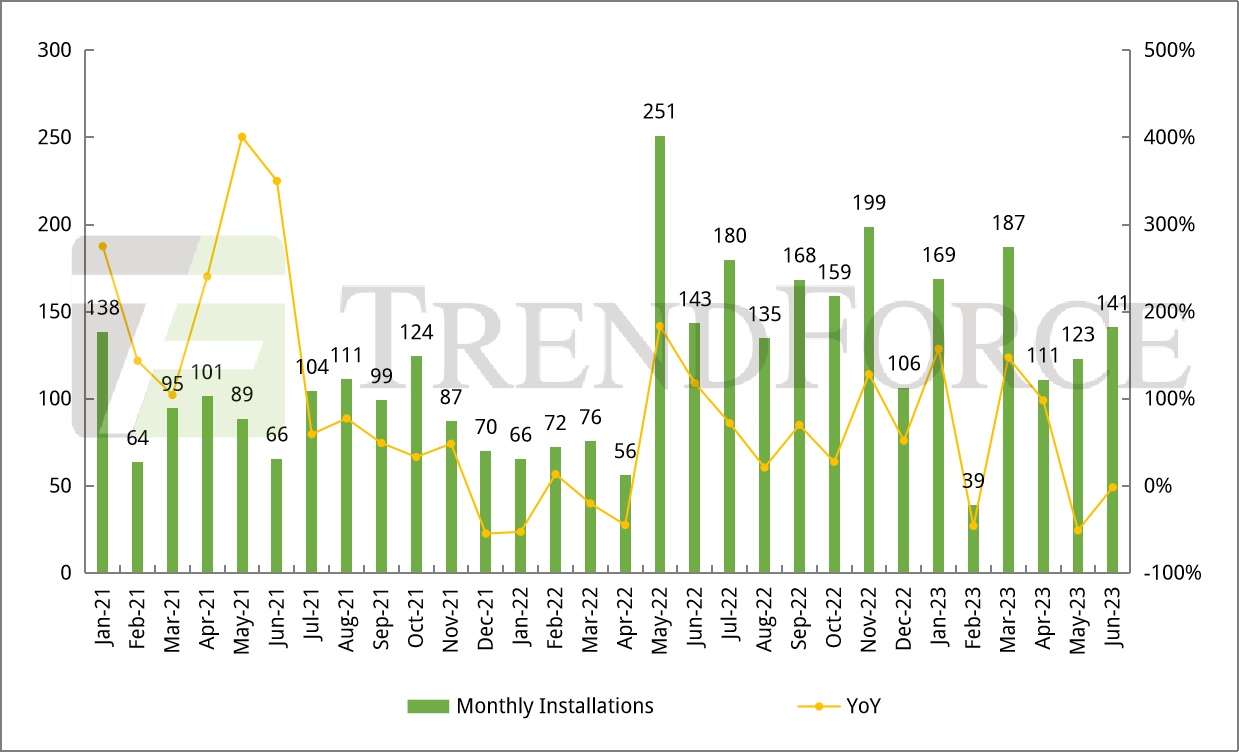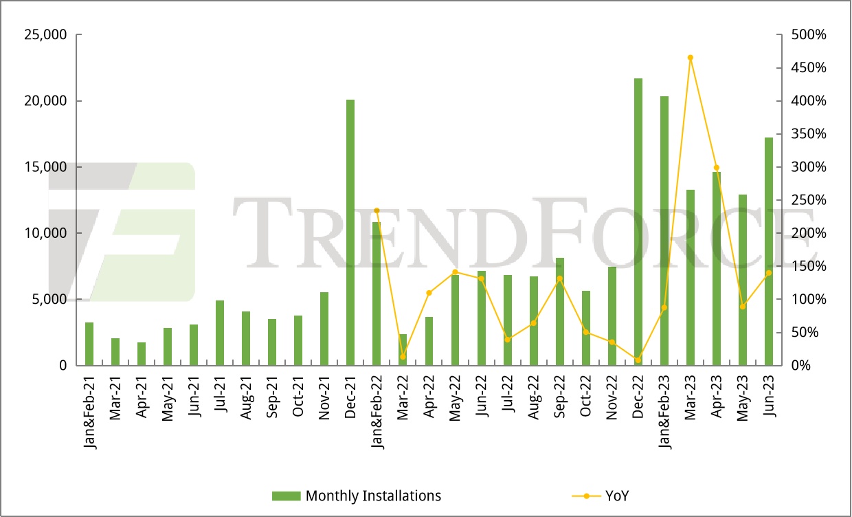 图:2023年1-6月中国光伏新增装机78.4 GW,同比+154%