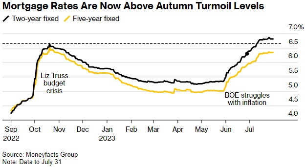 抵押贷款利率现在高于去年秋季动荡时期的水平