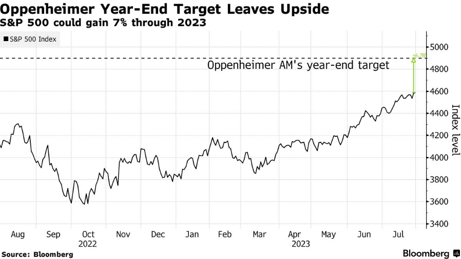 Stoltzfus将该指数的年终目标价从4,400点上调至4,900点,为年底前的近7%涨幅留下了空间。这将超过该指数在2022年1月创下的纪录,也是华尔街策略师中最乐观的预测。