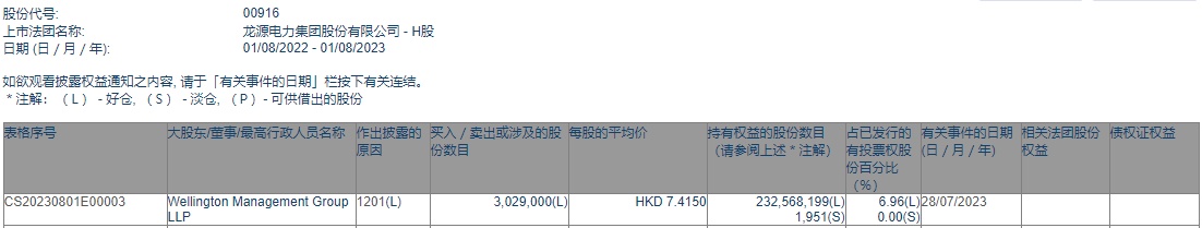 LLP减持龙源电力(00916)302.9万股,每股作价7.415港元,总金额约为2246万港元。减持后最新持股数目约为2.33亿股,最新持股比例为6.96%。