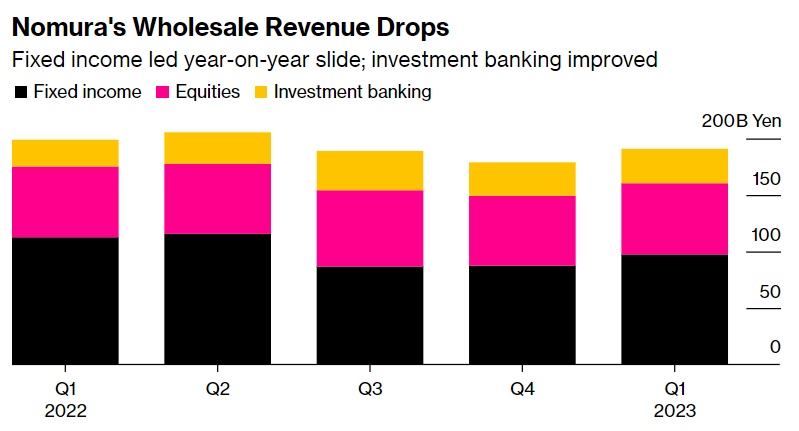 该公司首席执行官Kentaro Okuda在执掌这家日本最大的经纪公司的头三年里,净收入下降,他正在努力恢复盈利能力。日本股市的反弹提振了面向个人客户的业务,为该季度提供了推动力,但该公司仍在努力应对高成本和全球业务表现不佳的问题。