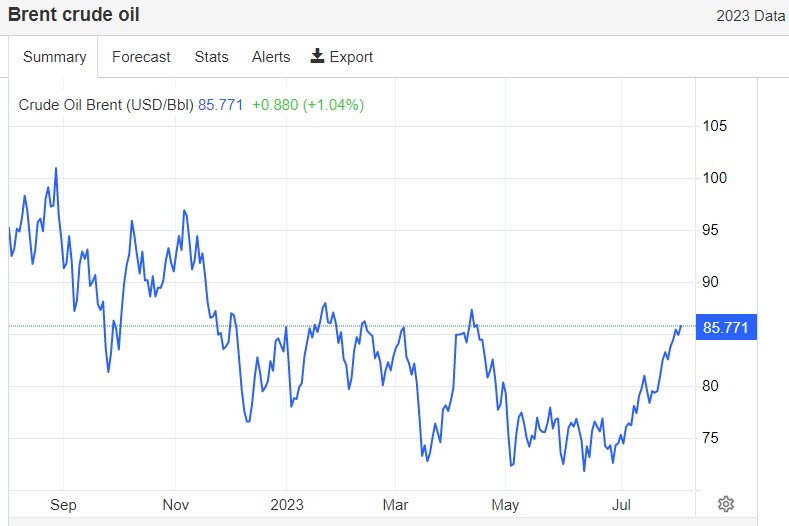 这位能源部发言人表示,此举并非拒绝石油公司向SPR库存出售石油的提议,而是根据“市场情况”做出的决定。这位人士没有具体说明此举意味着什么,但近期欧佩克+以及沙特原油减产带来的影响开始显现,在近几周,供应减少刺激国际油价基准——布伦特原油油价升至每桶85美元以上。数据显示,布伦特原油期货在7月涨幅高达14%,为一年多来最大单月涨幅;WTI原油期货上涨约16%,创去年1月以来最大单月涨幅。