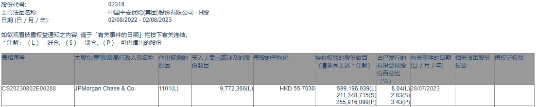 智通财经APP获悉,香港联交所最新资料显示,7月28日,小摩增持中国平安(02318)977.2366万股,每股作价55.703港元,总金额约为5.44亿港元。增持后最新持股数目约为5.99亿股,最新持股比例为8.04%。