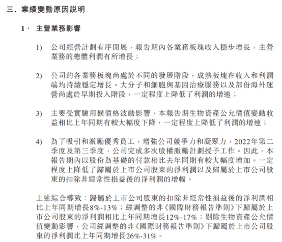 相比一季度,二季度的康龙化成业绩虽有增长但增速进一步放缓。康龙化成给出的理由是,大分子细胞与基因治疗服务等因素,还有实验猴子跌价因素,也有股权激励因素。