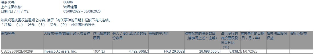 Advisers,Inc.增持诺辉健康(06606)449.25万股,每股作价26.6029港元,总金额约为1.2亿港元。增持后最新持股数目为2669.8万股,最新持股比例为5.83%。